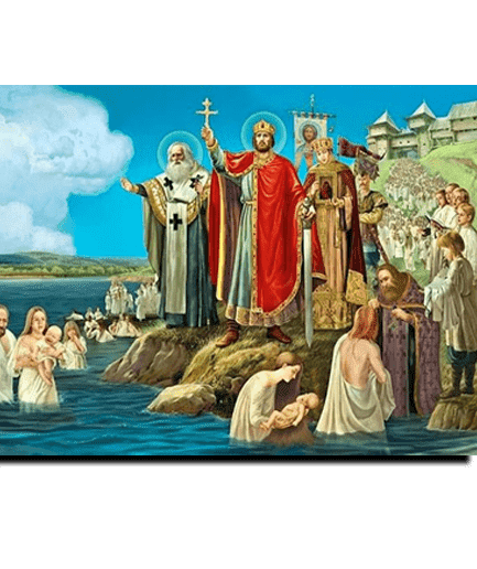 Крещение Руси. Киевская Русь принимает православное христианство. Княжение Владимира в Киеве; воздвижение по его повелению на холме деревянных фигур языческих богов. Миниатюра XV века Русский князь Владимир в первые годы своего правления сделал попытку приспособить язычество к своей политике. Он хотел собрать всех богов, которым поклонялись различные племена, и составить из них в Киеве пантеон.  Подробнее...
