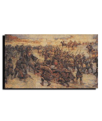 Битва на Чудском озере - сражение между русскими во главе с Александром Невским и рыцарями Ливонского ордена. Эта битва вошла в историю, как "Ледовое побоище". Александр Невский расположил русскую рать на юго-восточном берегу Чудского озера, напротив острова Вороний камень. О боевом порядке войска нет данных. Можно полагать, что это был «полчный ряд» со сторожевым полком впереди.  Подробнее...
