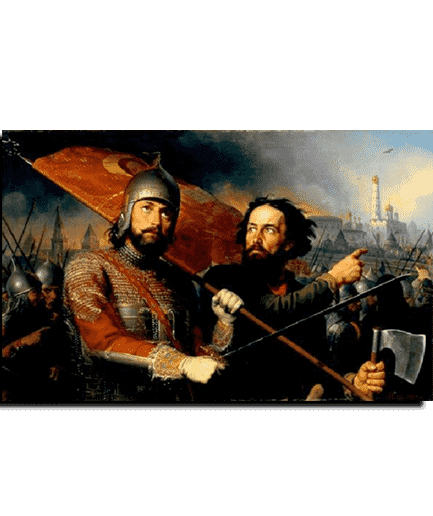 Куликовская битва - сражение между объединенной армией русских княжеств во главе с Дмитрием Донским и армией Золотой Орды во главе с Мамаем. Усиление Московского княжества в 60-е годы XIV в. и объединение вокруг него остальных земель Северо-Восточной Руси шло практически одновременно с усилением власти темника Мамая в Золотой Орде.  Подробнее...