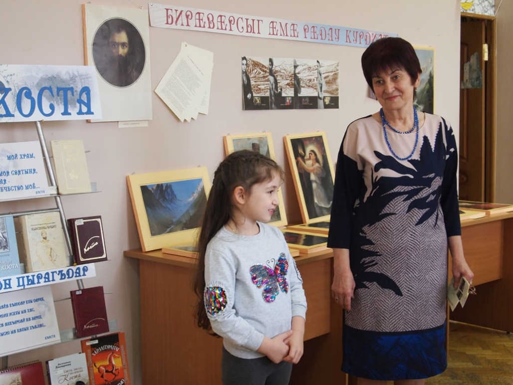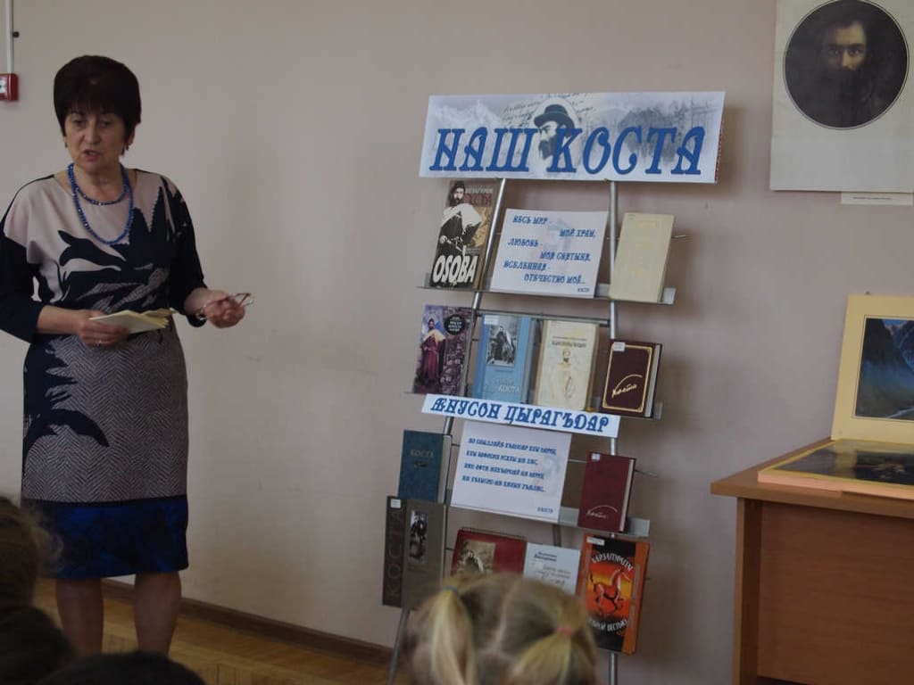 Так, сотрудники Центральной городской библиотеки и ГБОУ прогимназии «Эрудит» провели для юных читателей литературно-музыкальную композицию «Свети, звезда по имени Коста!», а в библиотеке – филиале №1 библиотекари и члены литературного клуба «Ӕхсæрдзæн» подготовили и провели литературно - музыкальный вечер «Иры хур ыскасти Нары».