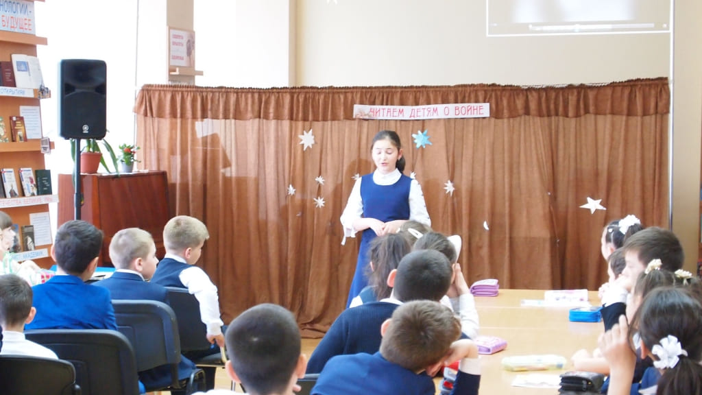 Для 25 юных читателей был прочитан рассказ Владимира Железникова «В старом танке», повествующий о мужестве неизвестного молодого танкиста, попавшего в плен, но боровшегося до последней минуты своей жизни.