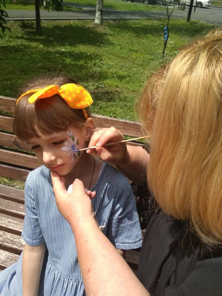 На творческой площадке маленькие посетители смогли принять участие в мастер-классе – ребята своими руками изготовили открытки, которые в зимнее время напомнят им о лете. Добавить красоты в наш мир можно было с помощью аквагрима. Почитать книги и журналы, представленные на выставке «Я с книгой открываю мир», можно было, уютно расположившись на скамейке в тени деревьев.