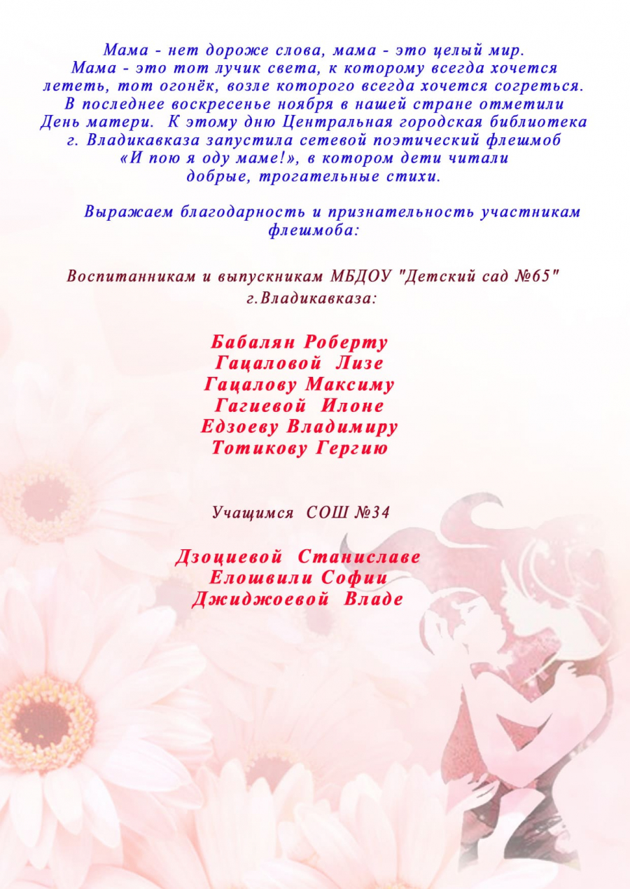 Сетевой поэтический флешмоб "И пою я оду маме"!